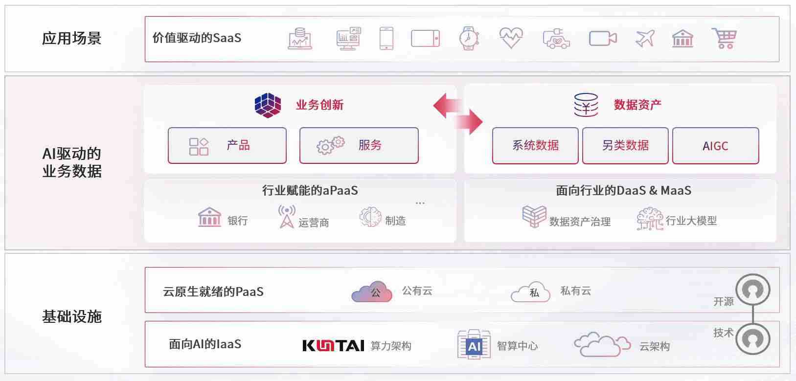 数字时代,,,围绕企业数字化转型的关键要素,,,,ok钱包数码开创性的提出数云融合战略和技术体系框架,,着力在云原生、、数字原生、、、、AI原生和信创产业上架构产品和服务能力,,,为处在不同数字化转型阶段的快消零售、、汽车、、、金融、、医疗、、、、政企、、教育、、、、运营商等行业客户提供泛在的敏捷IT能力和融合的数据驱动能力,,,构建跨界融合创新的数字业务场景和新业务模式,,助力企业级客户建立面向未来的核心能力和竞争优势,,全面推动社会的数字化、、、、智能化转型升级。。