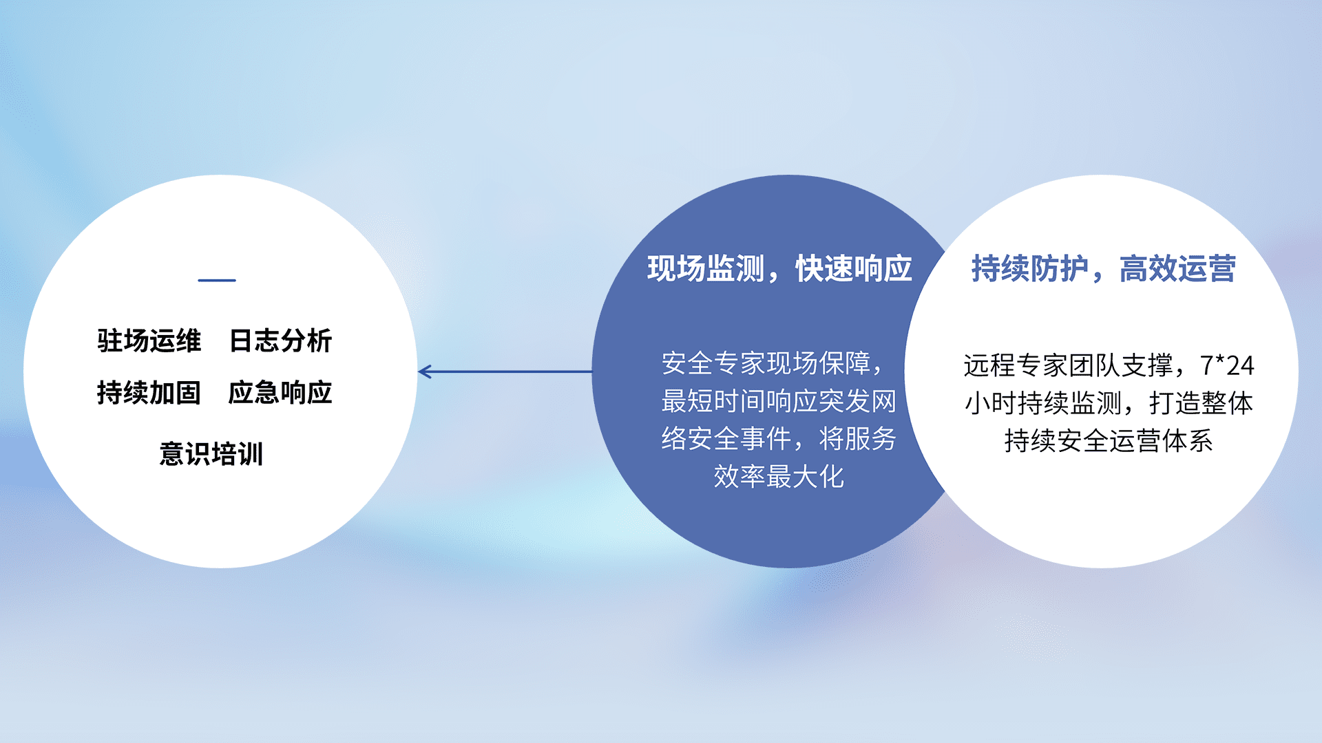 针对客户行业特性,,提供专属的一站式安全管理服务,,,帮助客户全面感知网络空间威胁,,,,通过安全专家的线上、、、、线下防护支持,,实现风险闭环,,将安全保障常态化,,,为客户打造常态化安全运维运营服务。。